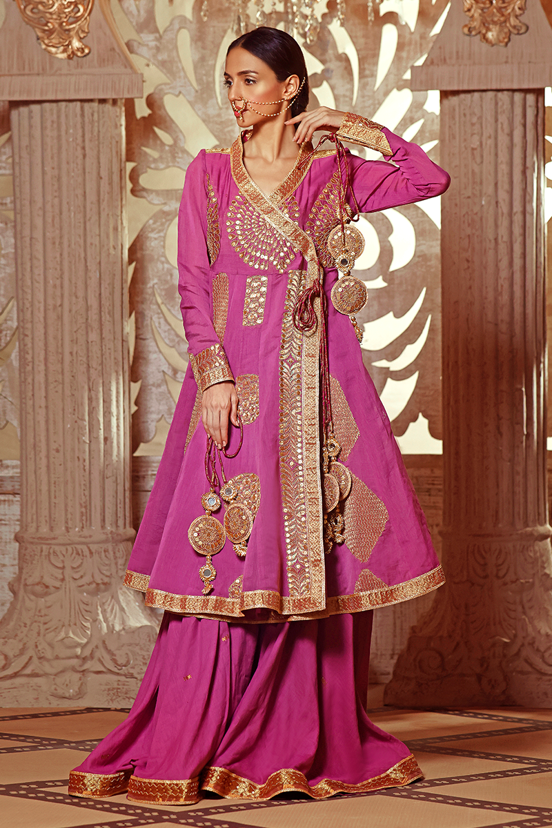 Lavender Banarasi Lawn Short Angarka with Dull Gold Marori & Sequins